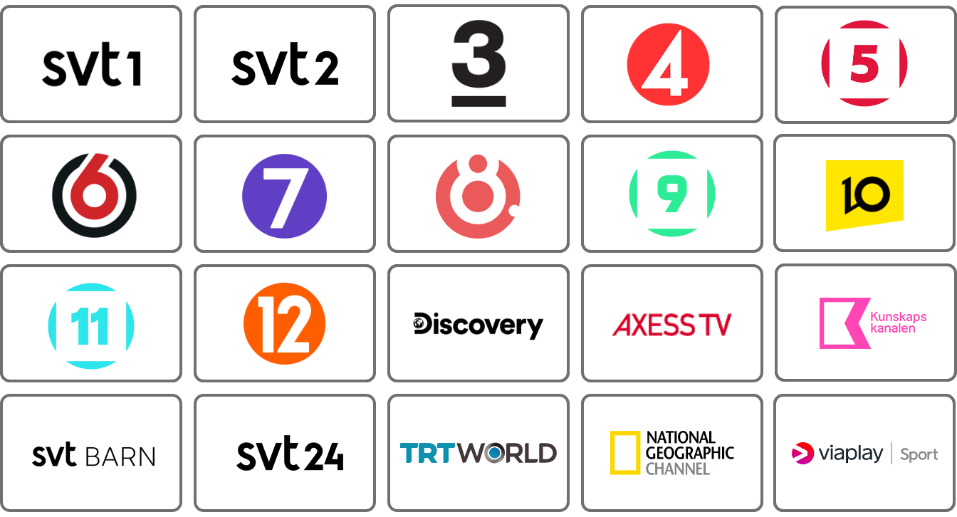 Vi erbjuder tre populära paket: Small, Medium och Large – alla fyllda med olika typer av innehåll som nyheter, underhållning, sport, fakta och barnkanaler.